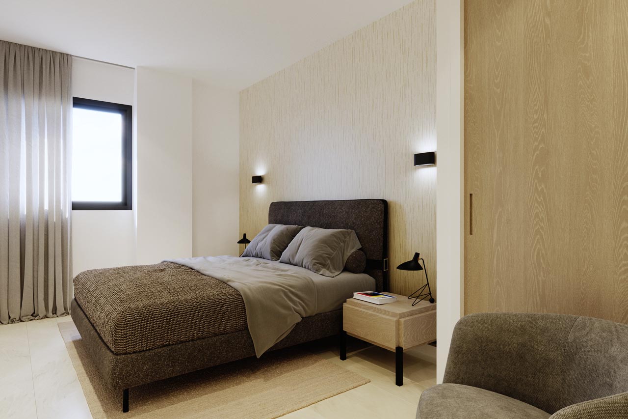 Once inside any of its 60 homes, distributed in 2 blocks of 5 floors each, the spaciousness of its rooms and the fact of having views on both sides of the block stand out; both to the central common areas and to the exterior, which allows natural light and Pórtico Plaza to be the same thing. Its spacious living room has direct access to the terrace, and blends completely with the kitchen, offering an open and modern concept of stay where you will spend much of your time at home. Along with its 3 bedrooms and 2 bathrooms, the materials and equipment used are of the highest quality, matching the building and its surroundings.