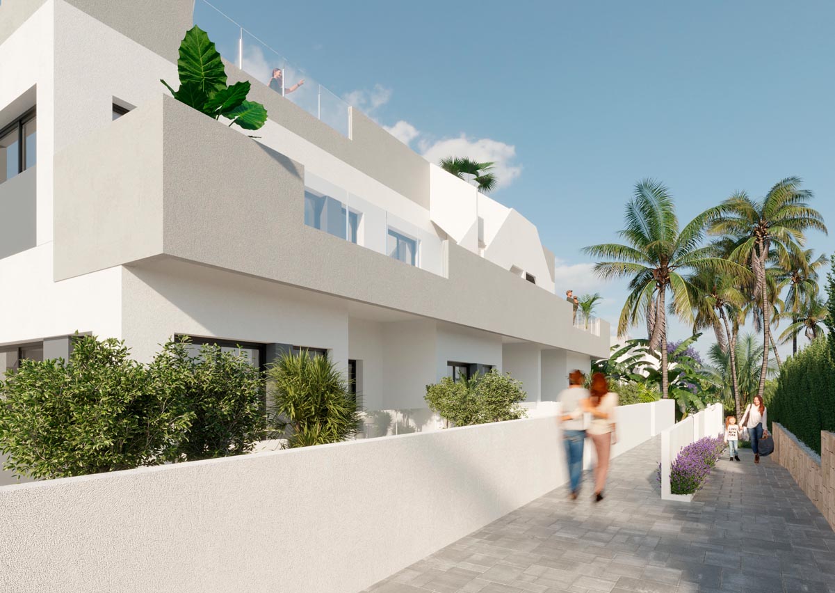 Zeitgemäße und helle Häuser mit hochwertiger Ausstattung, viel Platz und praktischem Design. Alle Häuser verfügen über eine Garage, und die Penthäuser bieten zudem eine private Sonnenterrasse. Genießen Sie die voll ausgestatteten Gemeinschaftsbereiche für die ganze Familie: große Swimmingpools für Erwachsene und Kinder, einen voll ausgestatteten Fitnessraum und schöne Gärten, in denen Sie entspannen und einzigartige Momente teilen können.