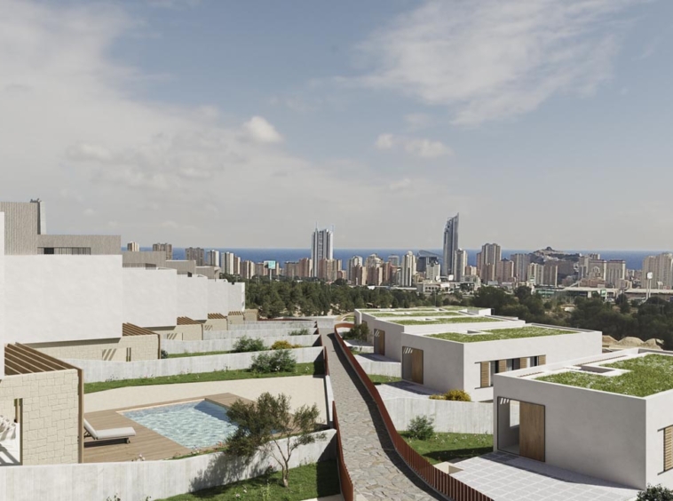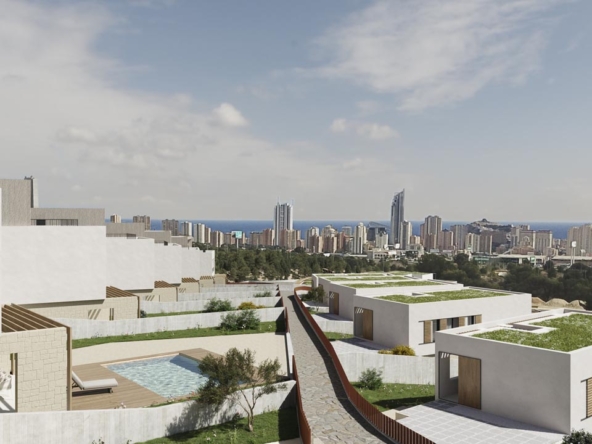 En el primer nivel, hay dos dormitorios en suite que se abren a una gran terraza, desde la cual se puede disfrutar de espectaculares vistas de Benidorm, el mar y las montañas.
