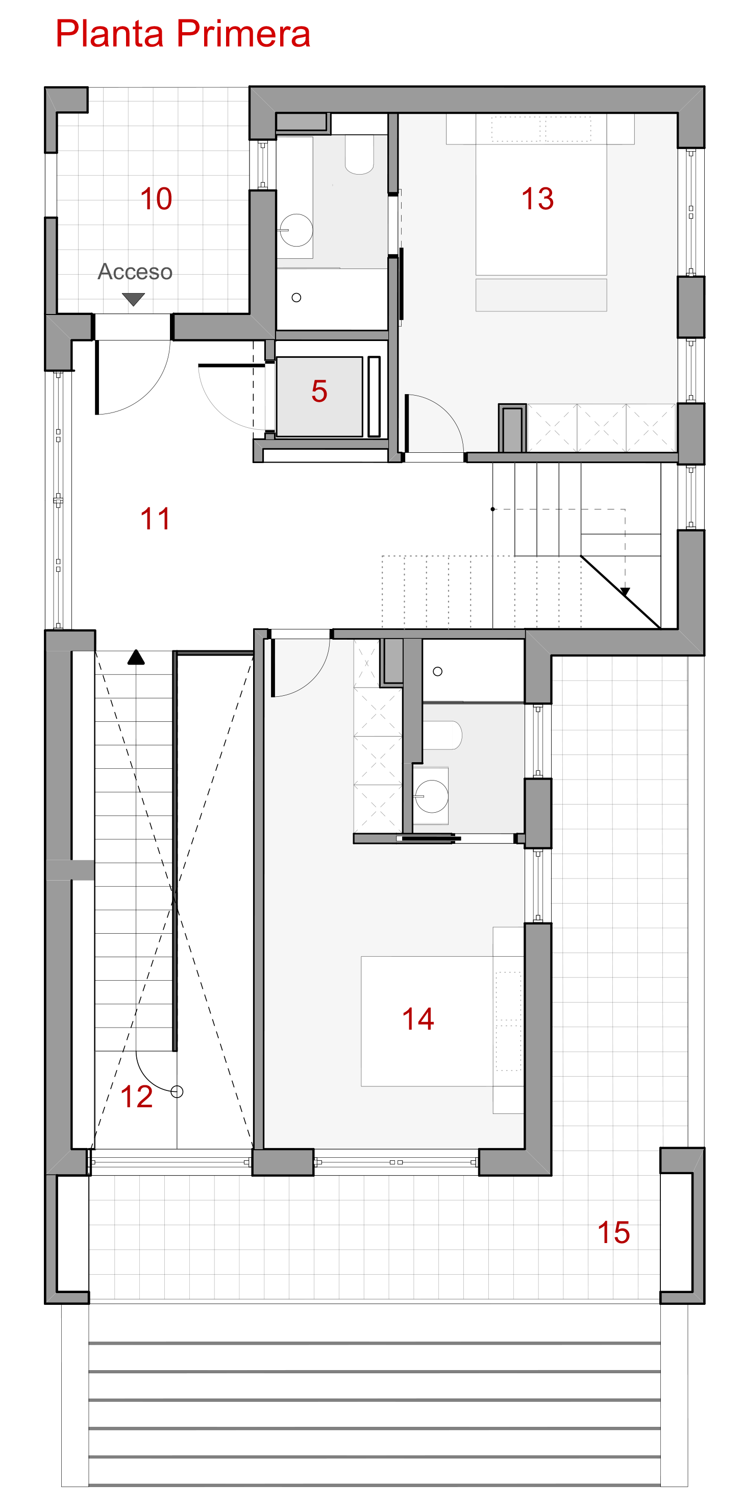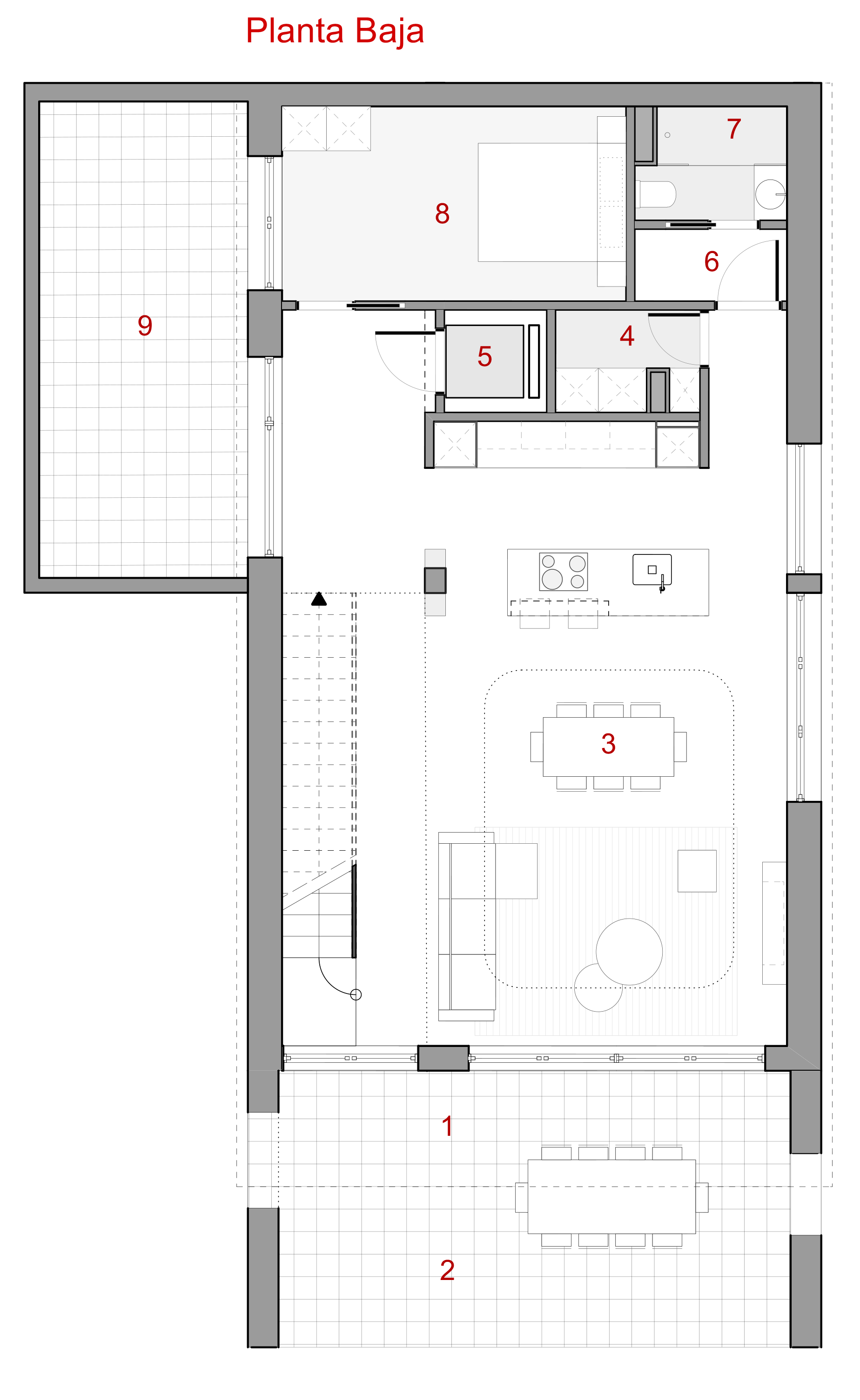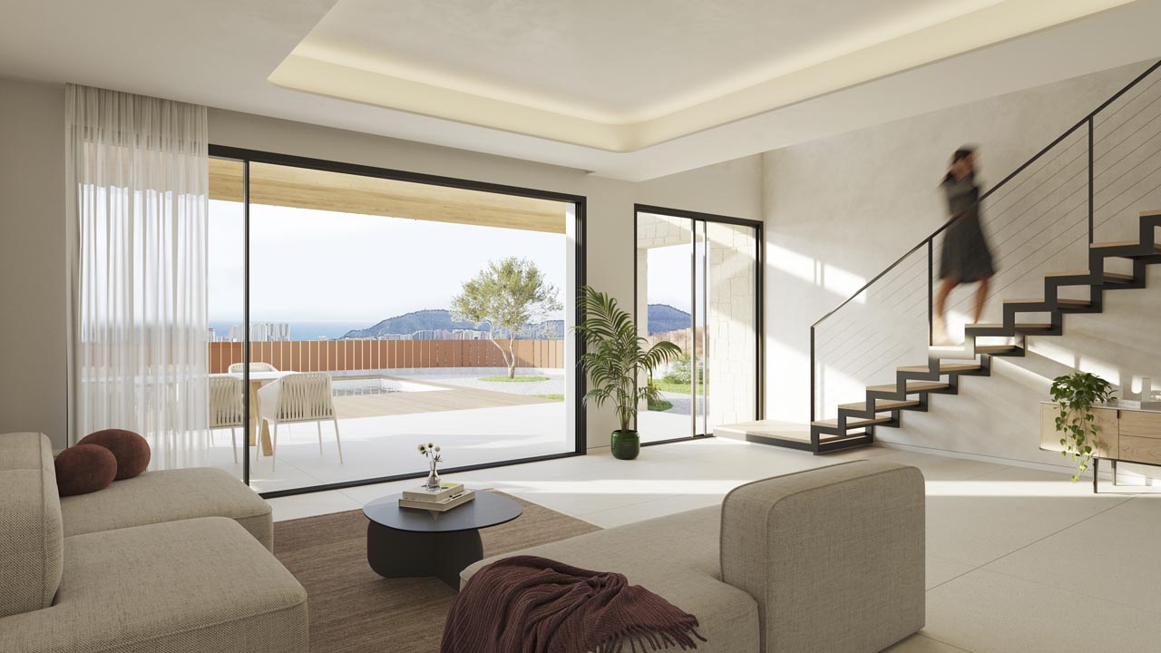 El segundo nivel está reservado para la suite principal, con su propia terraza privada. Con una superficie total de 315,66 metros cuadrados por villa y parcelas que varían entre 556 y 713 metros cuadrados, cada propiedad ofrece amplios espacios diseñados para el confort y la tranquilidad.