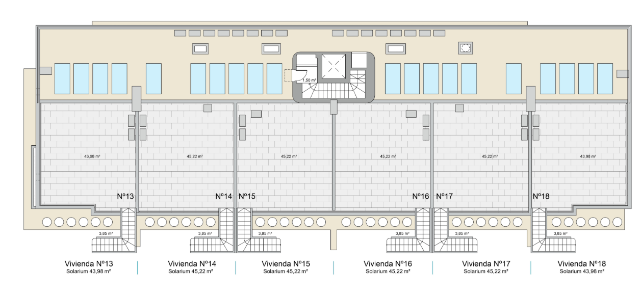 Dans ce programme, vous pouvez choisir entre des appartements de trois chambres et deux salles de bain, ou de deux chambres et deux salles de bain, selon vos besoins. Vous pouvez également opter pour des appartements en rez-de-chaussée avec jardin, des appartements ou des appartements avec solarium.