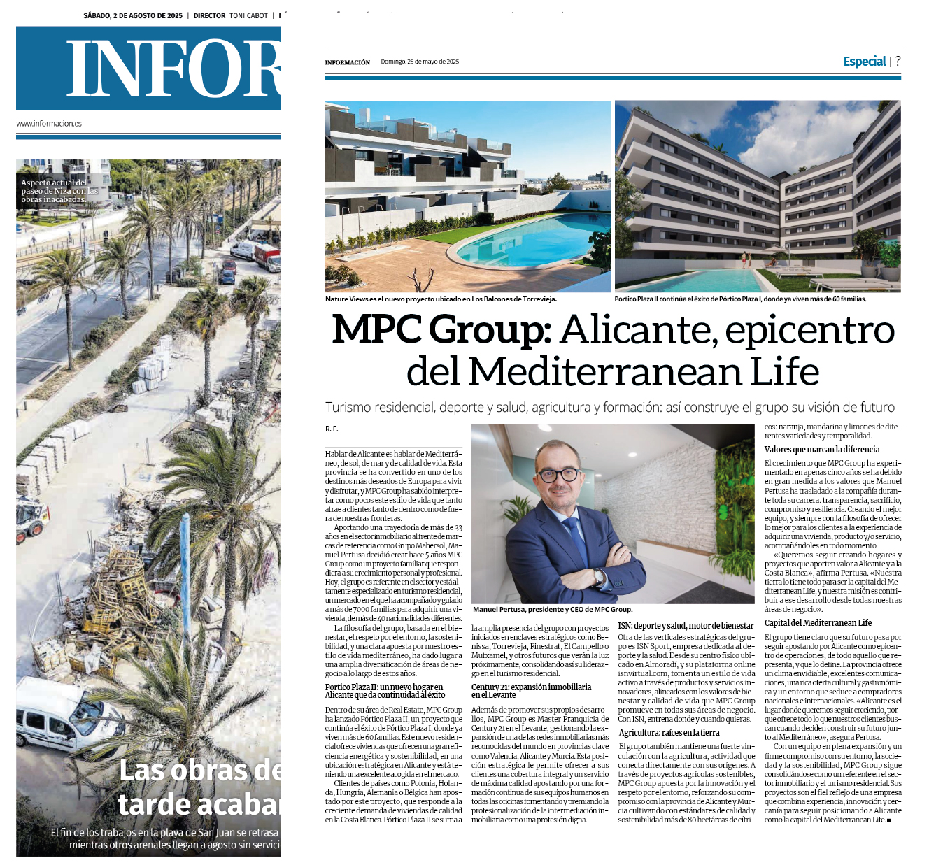 El pasado 1 de agosto, el diario Información publicó un artículo dedicado a MPC Group en el que destacaba nuestra visión y compromiso con Alicante como capital del Mediterranean Life. Queremos compartirlo con todos vosotros porque refleja muy bien quiénes somos, qué hacemos y hacia dónde vamos.