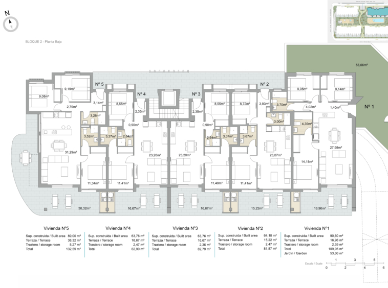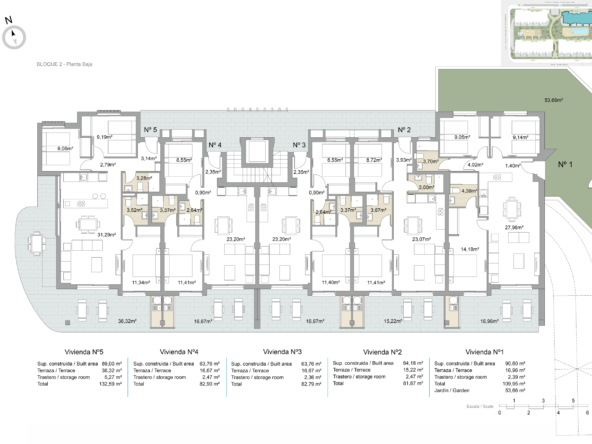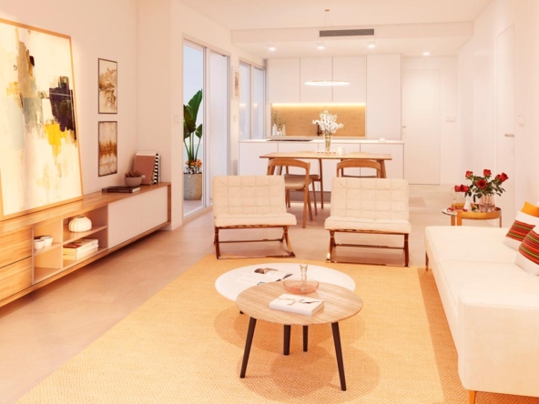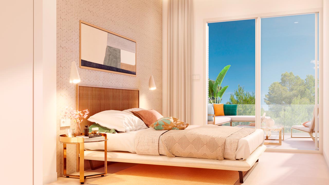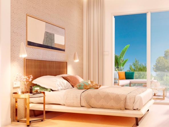 W tym osiedlu możesz wybierać między apartamentami z trzema sypialniami i dwiema łazienkami lub dwoma sypialniami i dwiema łazienkami, w zależności od potrzeb. Możesz również zdecydować się na apartamenty na parterze z ogrodami, apartamenty lub apartamenty z solarium.