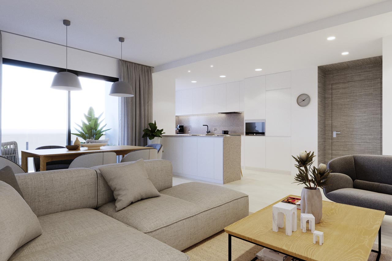 Una vez dentro de cualquiera de sus 60 viviendas, distribuidas en 2 bloques de 5 plantas cada uno, destacan la amplitud de sus estancias, y el hecho de poseer vistas a ambos lados del bloque; tanto a las zonas comunes centrales como al exterior, lo que posibilita que luz natural y Pórtico Plaza sean una misma cosa. Su espacioso salón tiene acceso directo a la terraza, y se funde por completo con la cocina, ofreciendo un concepto abierto y moderno de estancia en la que pasarás gran parte del tiempo en casa. Junto con sus 3 dormitorios y los 2 baños, los materiales y equipamientos empleados son de una altísima calidad, a la altura del edificio y su entorno.