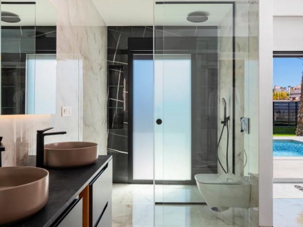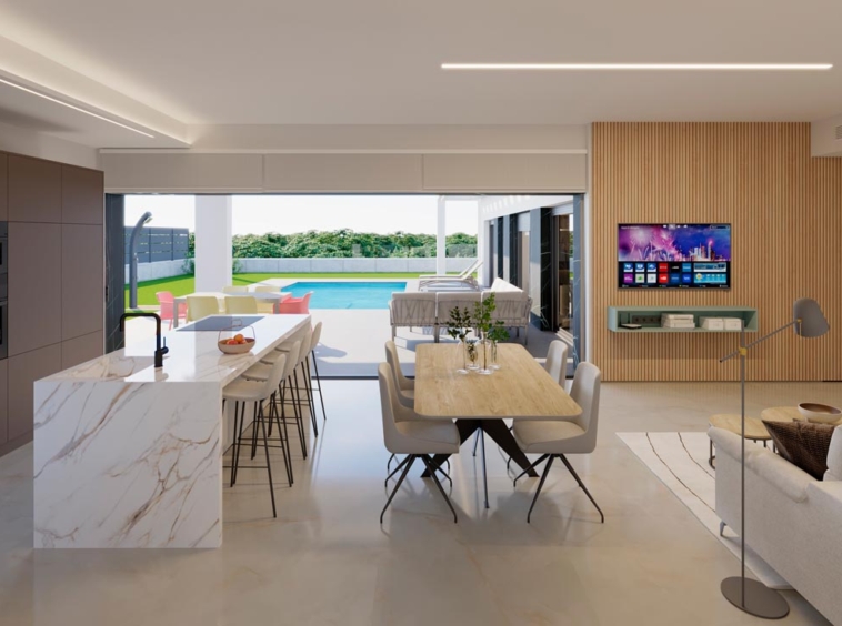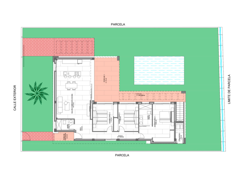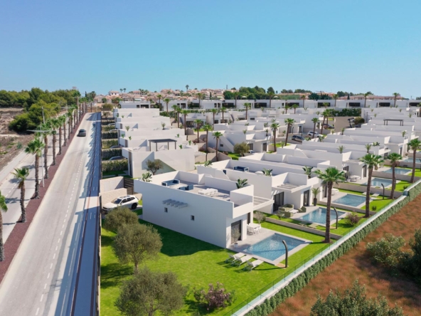 Nuestras nuevas villas formarán parte de un complejo compuesto por 20 viviendas independientes, con la opción de elegir entre tres dormitorios y dos baños, o cuatro dormitorios y tres baños, ofreciendo un diseño excepcional tanto en su exterior como en su interior. Estas residencias están ubicadas en amplias parcelas independientes de aproximadamente 500 m2, que incluyen piscina privada, solarium, zona de aparcamiento y áreas ajardinadas.
